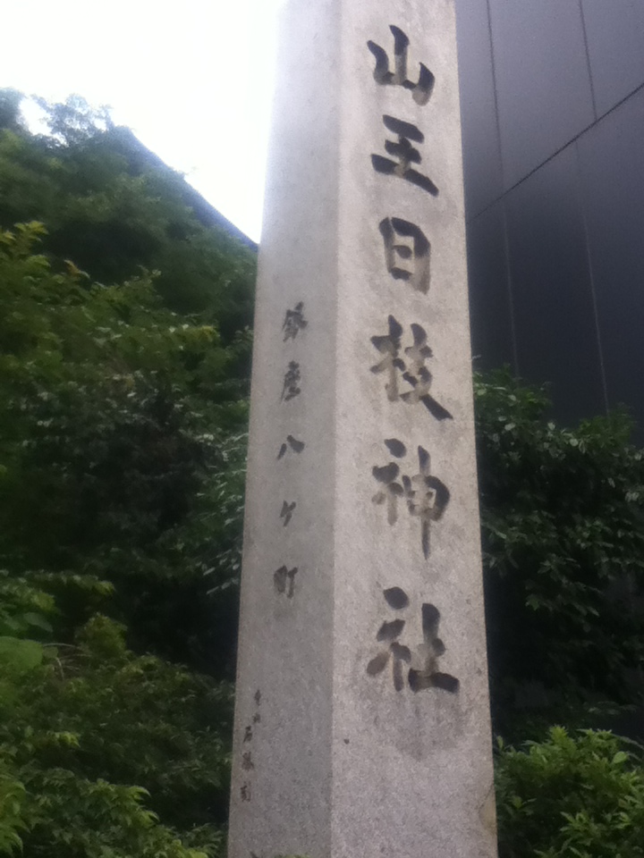 地下鉄赤坂見附駅の南東、外堀通り沿いにある。歩道横の石段を上がっていくと、神社の名称が刻まれた高い石柱がある。それから階段をあがっていけば拝殿の裏側に辿り着く。または南側のエスカレータもある。東側に回れば大きな鳥居が立ち、長い石段がある。境内入口には立派な神門があり、その先に拝殿が立っている。週末午後、かなりの参拝者が来ていた。境内はあまり広くないが、夢御殿、末社等がある。鎌倉時代初期、江戸太郎重継が居館に日吉の大神を勧請したことが始まりと言われる。神社やこの界隈に関心や知識のある方は訪問するのもいいかもしれない。