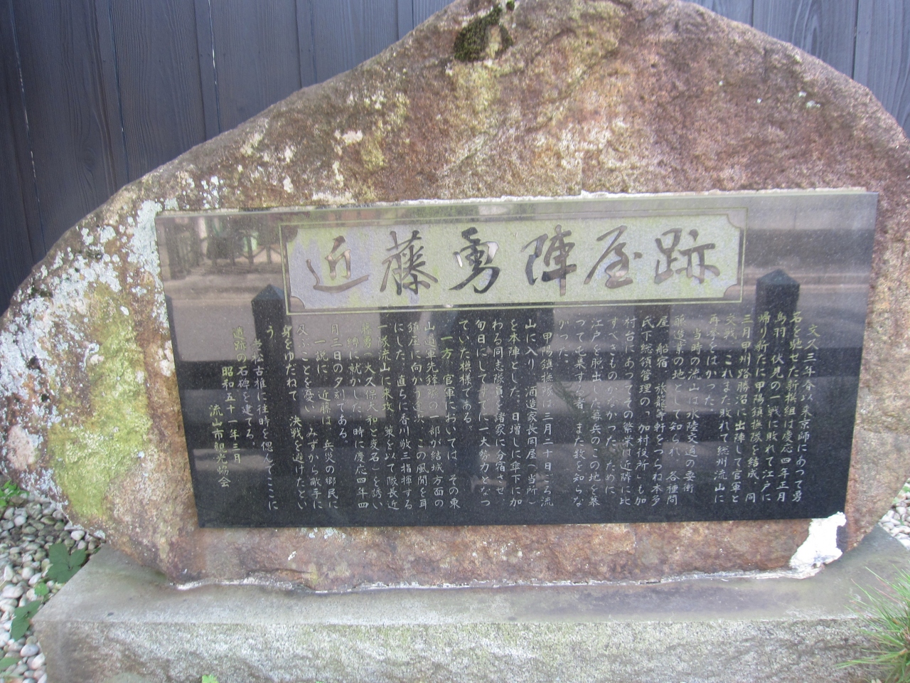 流鉄の終点流山駅の近くにありました。幕末に新選組の近藤勇が捕らえられた場所で、その後処刑されてしまったので、この場所が最後の陣営を敷いた場所となりました。特に新選組ファンというわけではありませんでしたが、近くまで行ったのでついでに訪れましたが、石碑が建っているだけで、期待していくとちょっと期待外れになってしまいます。隣には土産屋や閻魔堂等もありましたが、あまり観光客もおらず、人通りもほとんどなくひっそりとしていました。