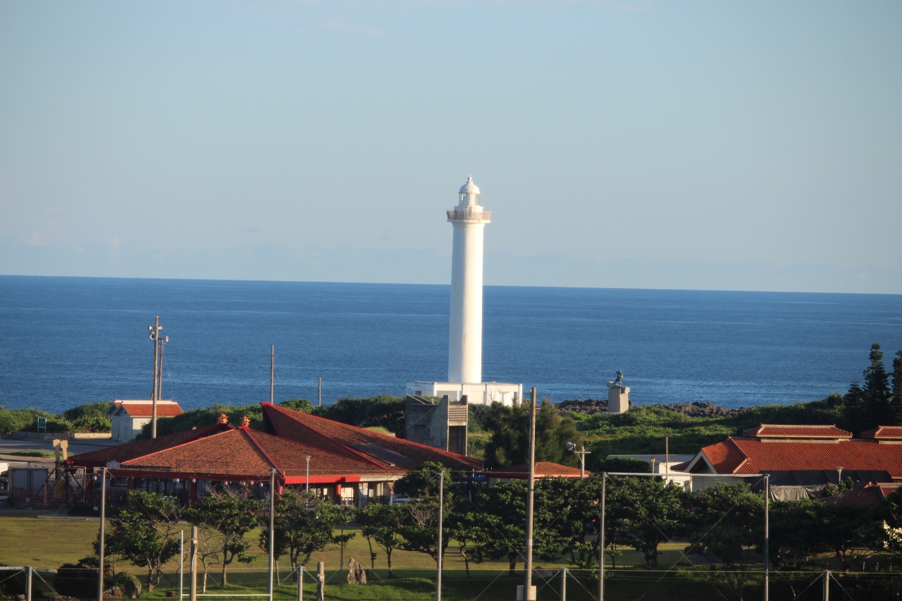 沖縄読谷村の北西端にある残波岬の先端に白い大きな灯台がたっています。このあたり一帯は残波岬公園として遊歩道が整備されていてのんびり散策できます。ダイナミックな断崖が見どころです。夕日が見えるころがとても良い時間です。
