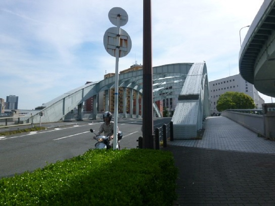 今木津川に架かる昭和橋にいます。この辺はいろんな川が合流しているようです。中之島方面から流れる堂島川と土佐堀川が合流する安治川、そして土佐堀川から分岐している木津川の最初に昭和橋は架けられています。1932年に大阪市電の路線として架けられたのですが、主橋部はタイドアーチとなっていて、莫大な重量が必要だったため難工事となったようです。なので見るからに頑丈な鉄橋となっています。