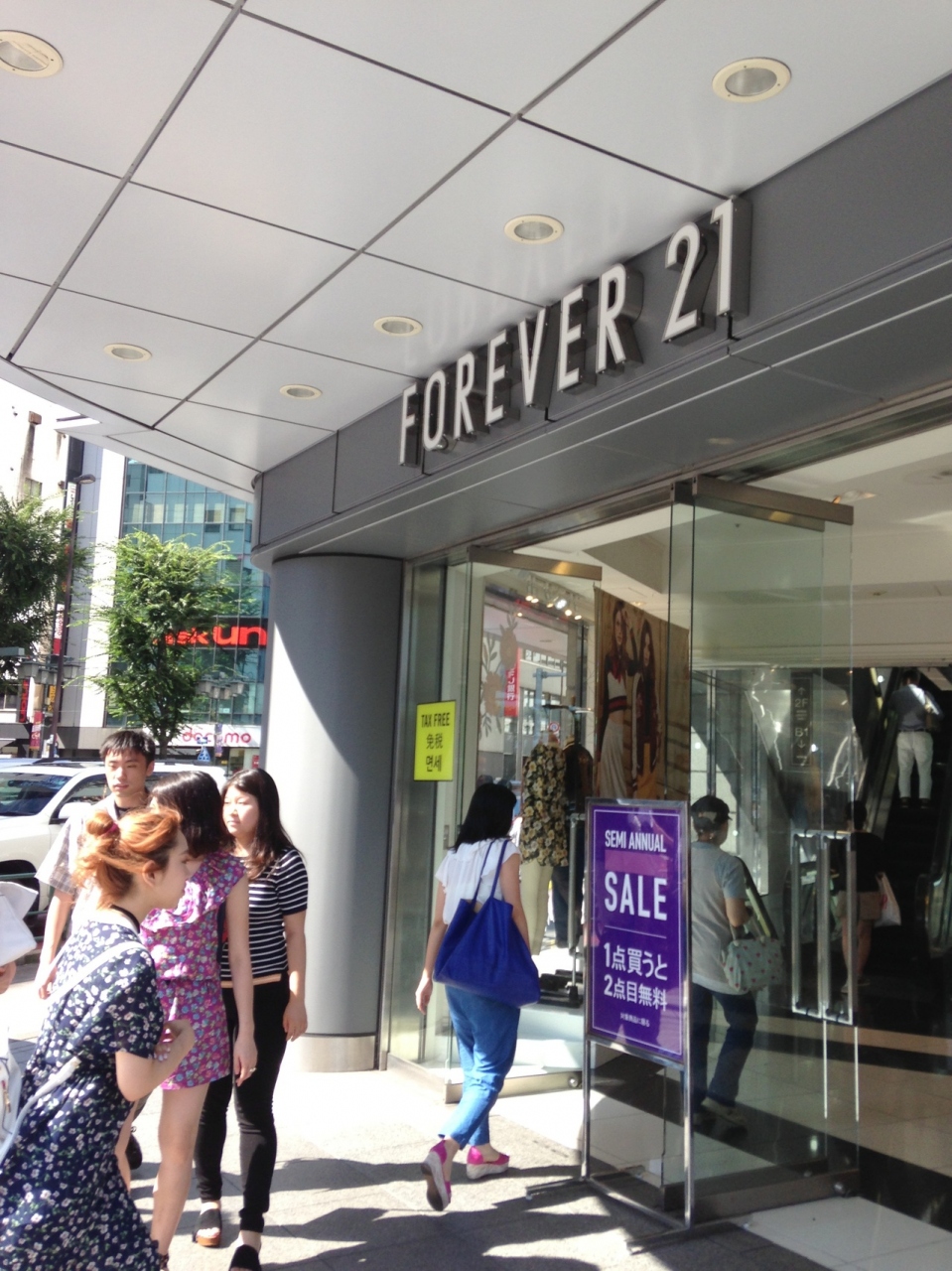 フォーエバー21新宿店では今、一枚洋服を買うと何ともう一枚が無料になると言うセールをやっていました。フォーエバー21は安くて大量生産なので同じ服が何着も在庫であるので、誰かと取り合う心配なくゆっくり欲しい服が見れます。