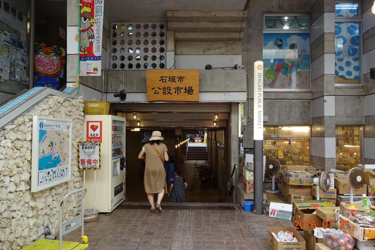 ユーグレナモールのど真ん中にある石垣市が作った市場です。半地下の市場は地元の人用に野菜や肉、魚などが売られています。2階はお土産屋になっていますが、外に露店で出ているおばちゃんの店の方が安かったりします。
