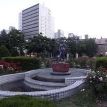 大通公園の西側12丁目にある水路の上に立つ銅像。