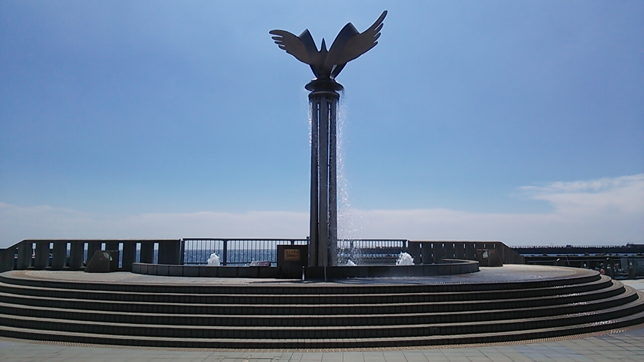 熱海市内の海岸沿い サンビーチの西隣 サンビーチと熱海親水公園の間に位置するデッキで、2016年7月31日の日曜日に立ち寄りました。