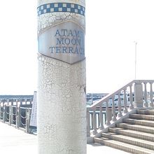 サンビーチと熱海親水公園の間にあるデッキ、「恋人の聖地」と称する展示物があります