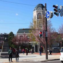 小樽の繁華街である堺町商店街も交差する五叉路がメルヘン交差点です。交差点中心部に移設された常夜灯と樽オルゴール堂前に設置された蒸気時計などフォトスポットやお土産ショッップなどが立ち並び小樽の中でも観光客が絶えない場所ですね。