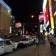 他のエリアに比べると圧倒的に飲食店が多く、夜も明るい。