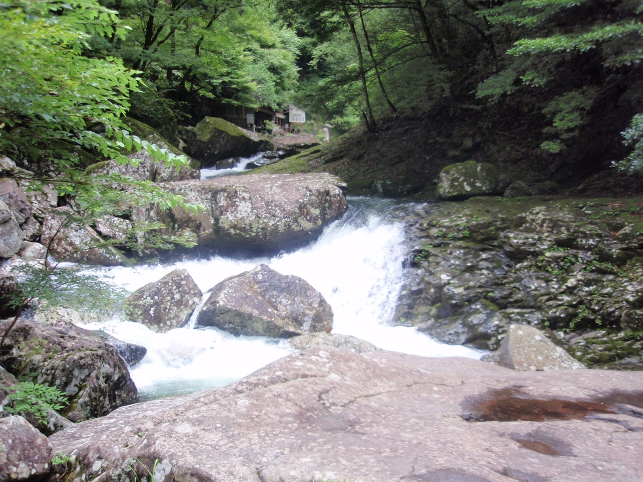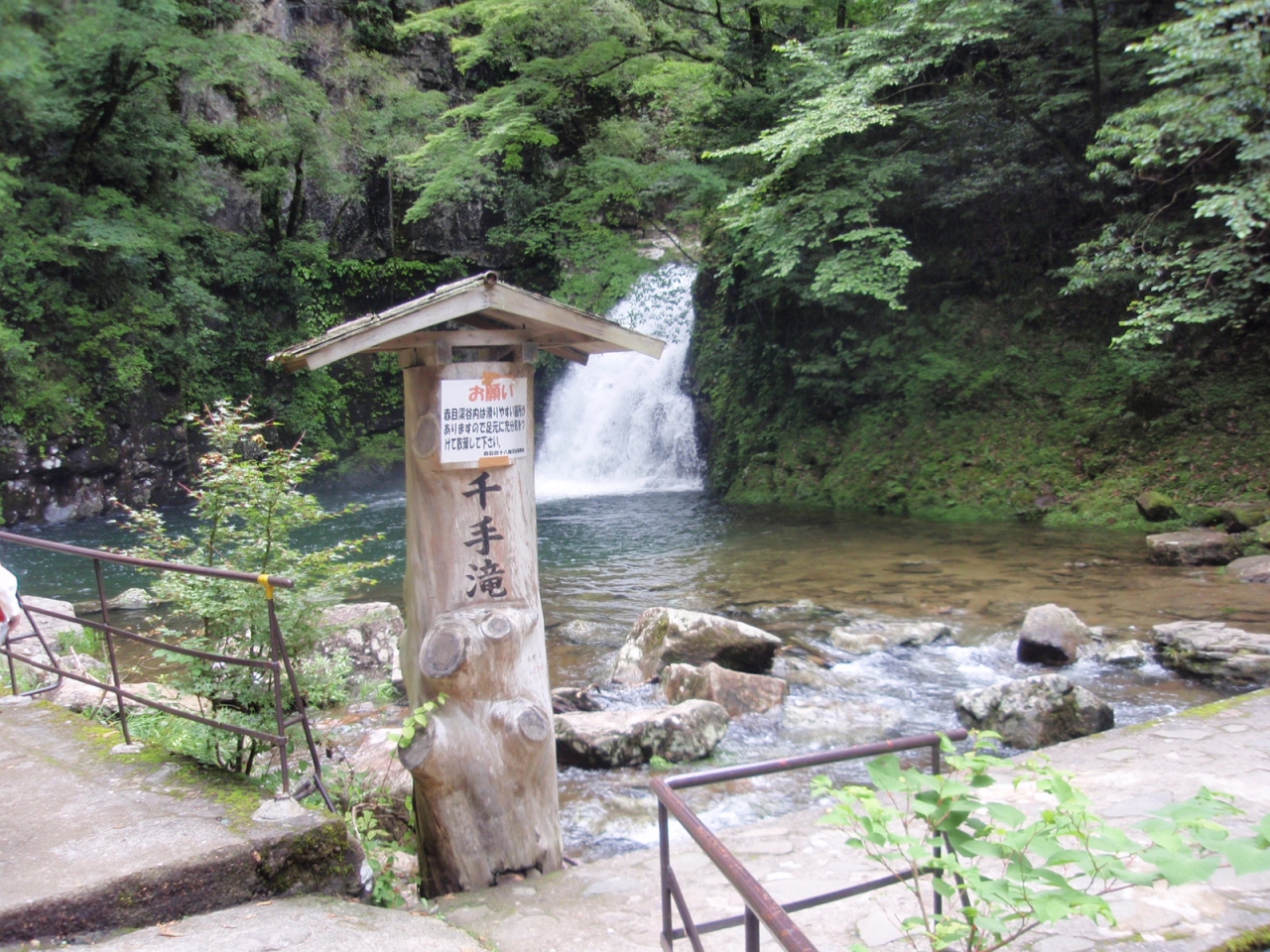 渓谷沿いの遊歩道であるので涼しい。ただし滝入口から岩窟滝上まで200Mほど登る。