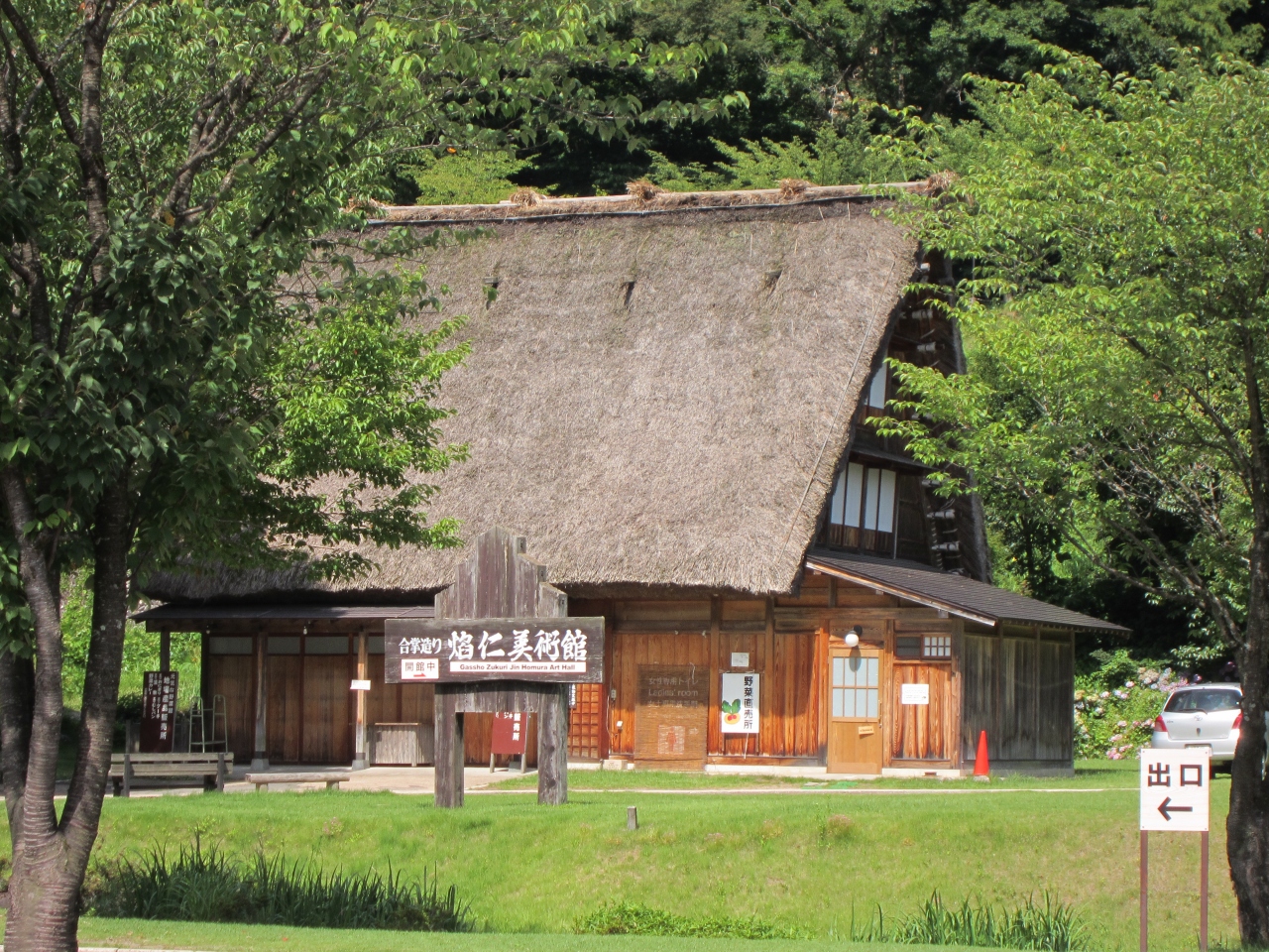せせらぎ公園にある茅葺屋根の現代アート美術館です。焔仁氏が、ここ白川郷の合掌造りのアトリエで、芸術作品を生み出しました。外観は古風ですが、中に入ると、力強い躍動的な女性の姿が描かれていました。独特の世界でした。