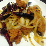 飲み物セットは、そもそも一品@680円に飲み物をつけても@680円という手品みたいなメニューです。で、一品は「鶏肉の山椒と唐辛子炒め」にしますが、確かに山椒入っていますし、唐辛子もバッチリ入っています…