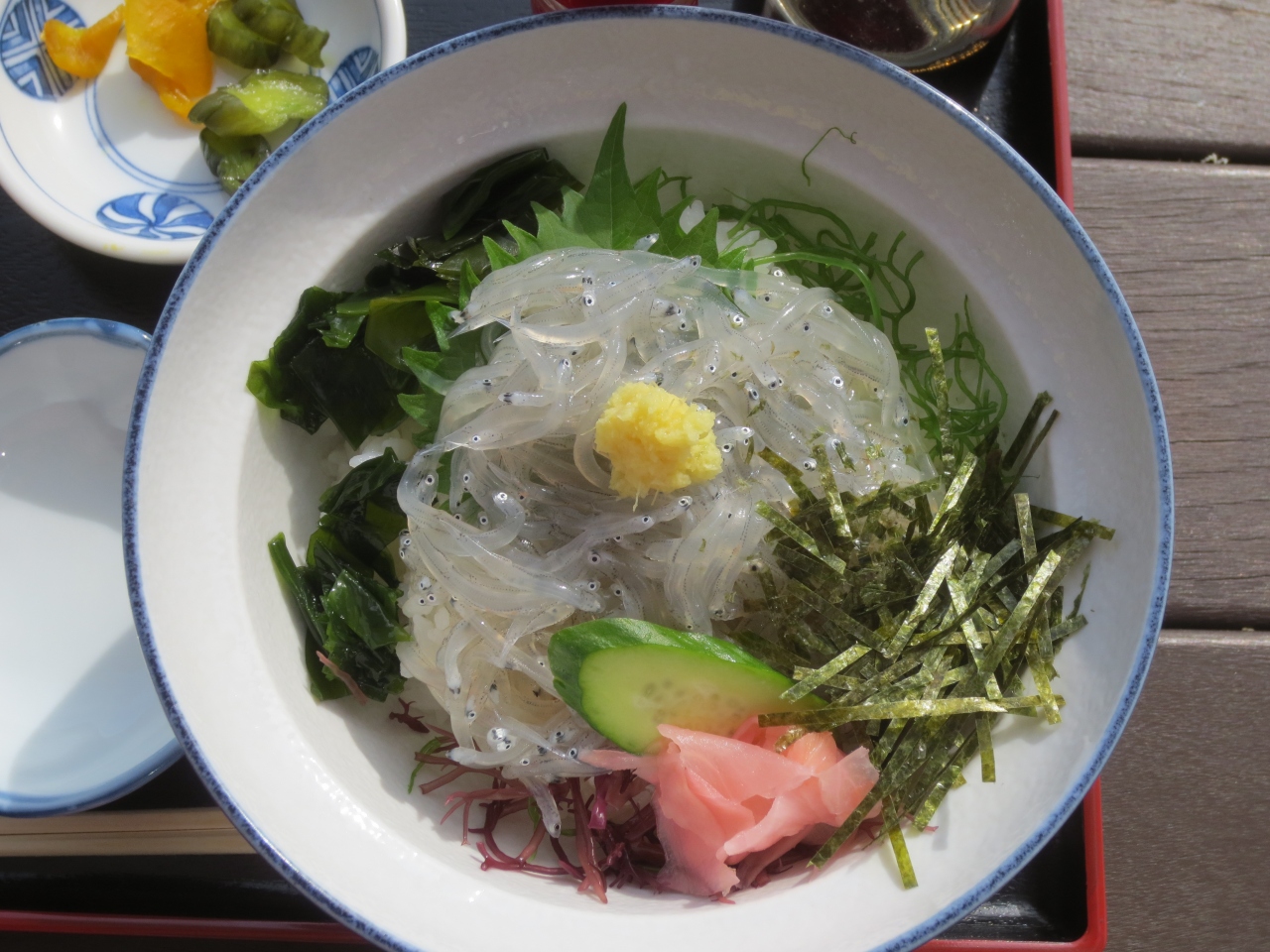 江の島岩屋近くにある食事処です。店内には岩屋を眼下に見下ろせる席があり、そこから見る、真下に広がる崖と岩に砕ける波が迫力満点。料理は地元の海の幸を使ったものがメインで、名物の生シラス丼をいただきました。新鮮でおいしかったです。