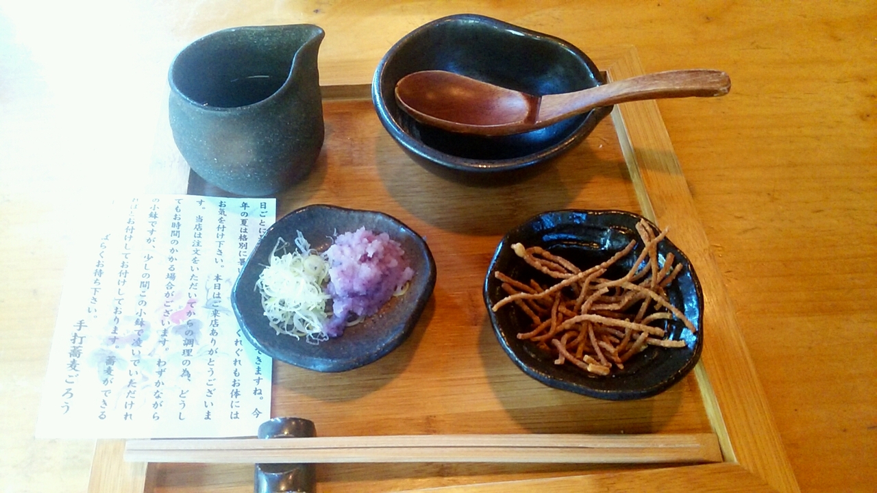 辛み大根蕎麦、てんぷら、ヤマメの塩焼きをいただきました。