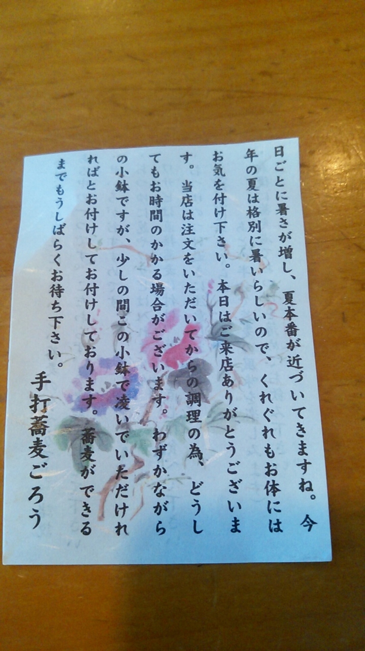 そっと添えてあるお手紙に心あたたまりました。ちなみに裏面には、おいしいお蕎麦の食べ方が書いてあります。