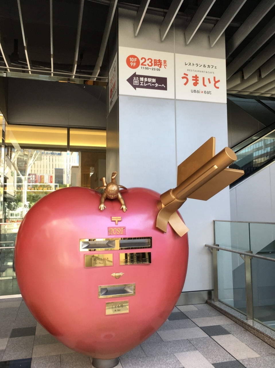 JR博多駅博多口南側に隣接する博多郵便局の跡地再開発で2016年4月にオープンした商業施設です。核テナントは博多マルイですが、ファッションだけではなく、レストランフロアうまいと3フロアもあり、飲食店がかなり充実しています。