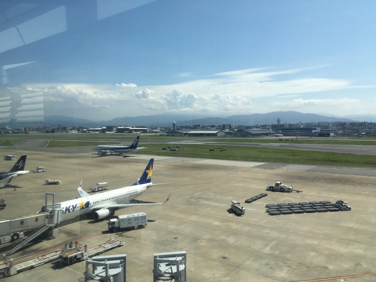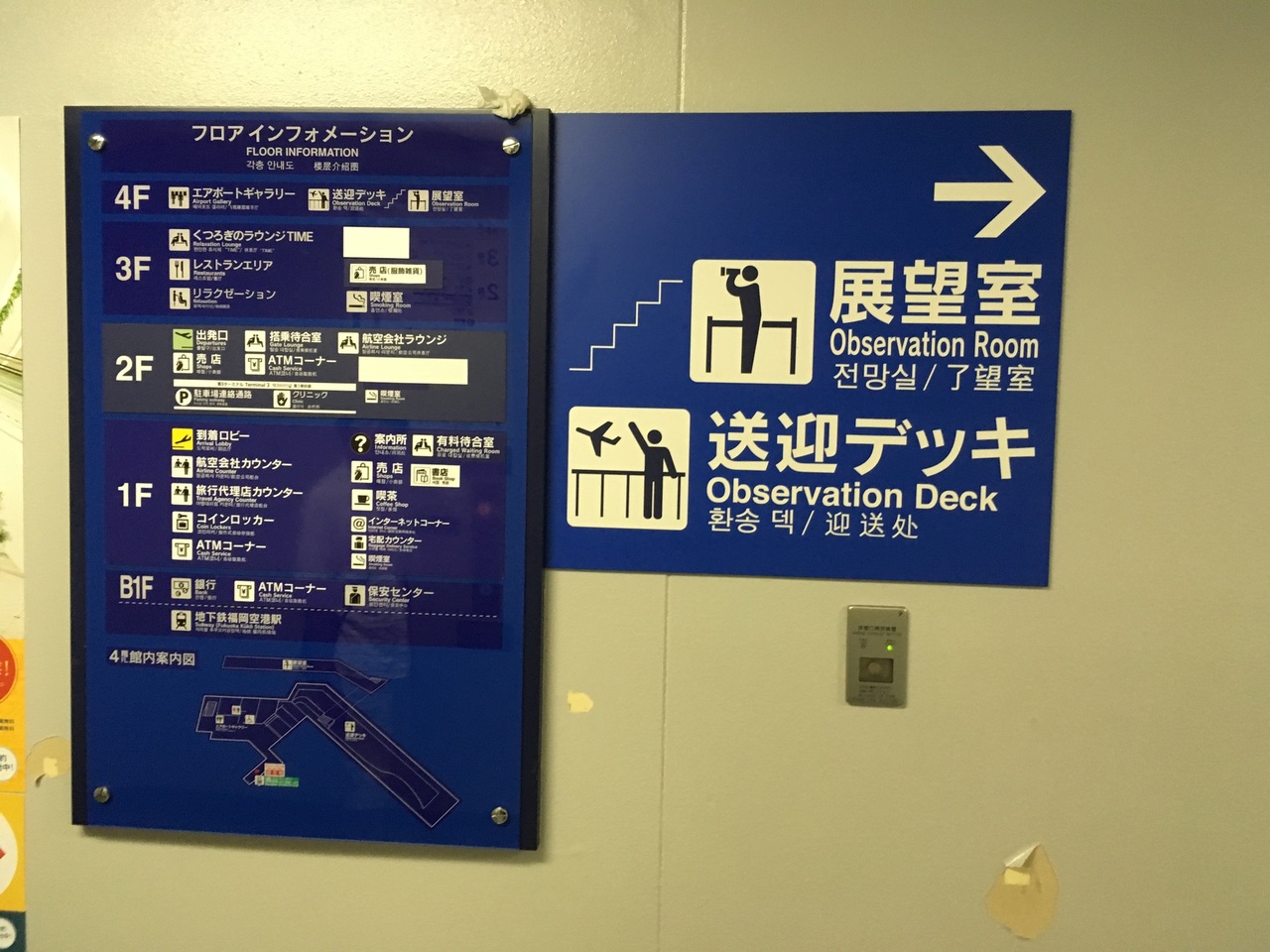 福岡空港国内線第2ターミナルビルの5階に展望室があります。4階に展望デッキがありますが、2016年9月16日までは「福岡空港ビアテラス ビアエア」が営業していますので、無料の展望施設は5階だけになります。とはいえ、5階の方がよく見えるし、空調が効いている室内なのでこちらの方がいいですね。難点は、エレベーターは4階までで5階へは4階から階段になることぐらいです。福岡空港は大変混雑しているのでひっきりなしに離着陸は見えるし、国際線の飛行機も結構たくさんあるので思いのほか楽しく過ごせました。