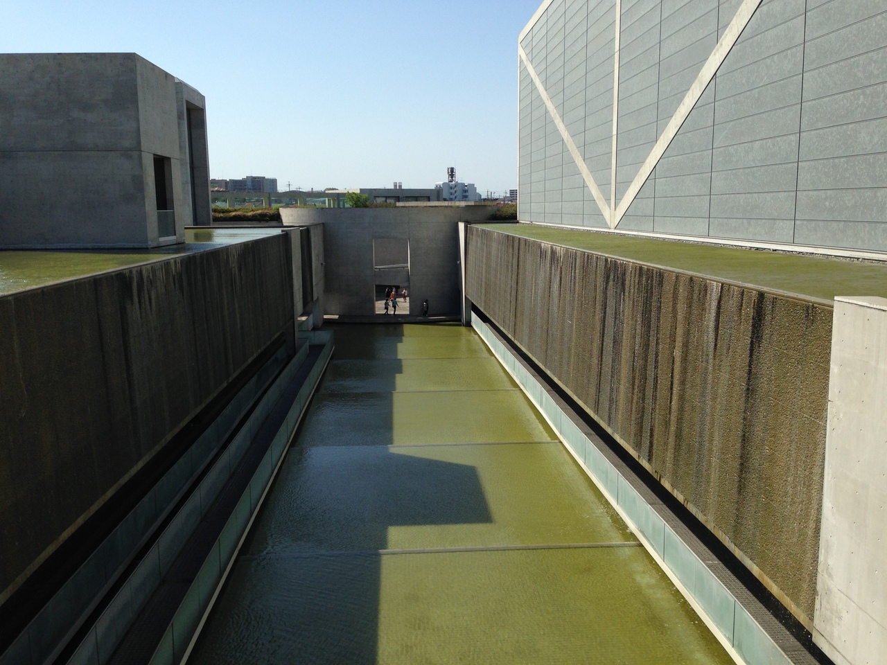 安藤忠雄設計の博物館で狭山池の歴史を紹介しています。建物の構造はさすが!という感じで水を使った魅せる建築物です。出来た当時にも来ましたがその時はとても綺麗で感動しました。今年久々に訪れましたが、経年でコンクリートが黒ずんだり少し残念でした。無料の施設なので中々メンテナンスは難しいようですね。
