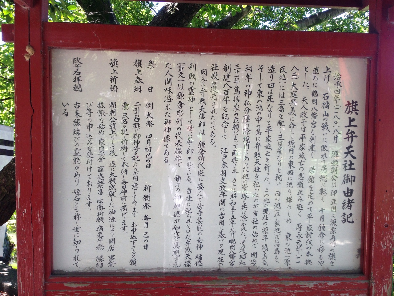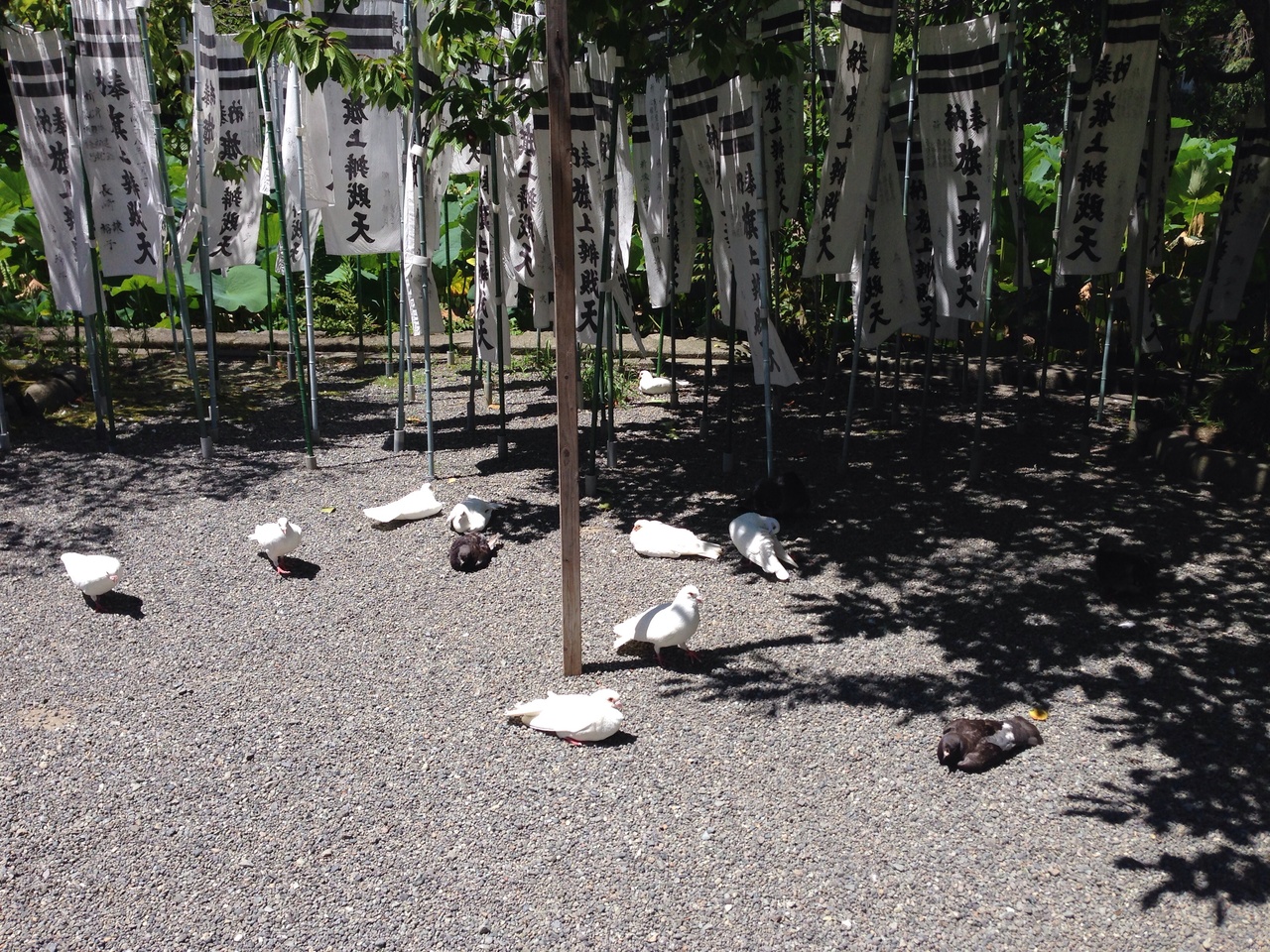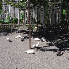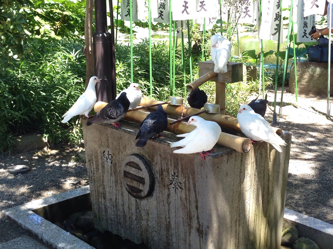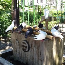 鶴岡八幡宮の鳥居をくぐり左手にあります。都心部では見ない白い鳩に珍しさを感じながら鳩の間をぬぐって橋を渡ると 神社の境内はまたも鳩、鳩、鳩でした。お参りしようにも、鳩が水浴びをしていて 手を洗えない…そんな状況。