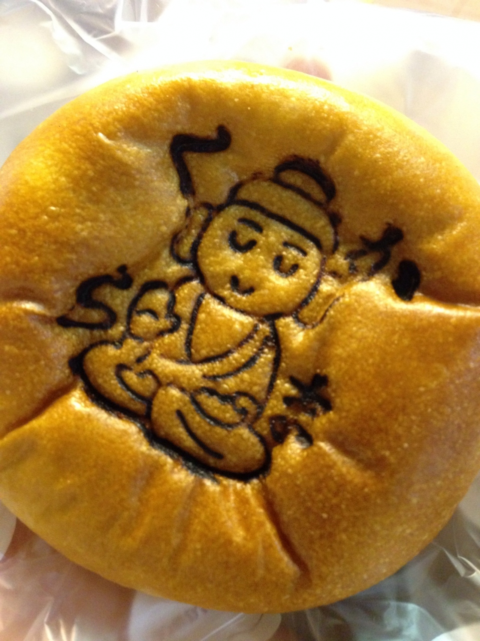 焼印が可愛らしい 大仏さんのアンパンマンを購入。通路をはさんだ向かいにはイートインスペースもありました。