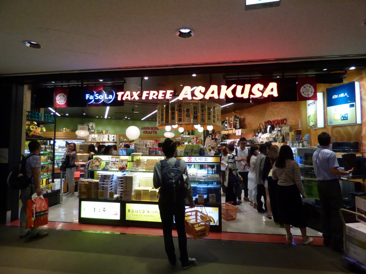 成田国際空港の第一ターミナル。出国の審査も終えて、搭乗エリアに入ったところにあるスーベニアショップです。日本各地のお菓子系のお土産を始め、いろいろな商品を扱っています。外国人に便利な店だと思いますが、日本人が見ていても十分におもしろい。