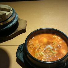 お勧めメニューはスンドゥブチゲ定食。濃い目の味でちょっと辛いのがクセになります。