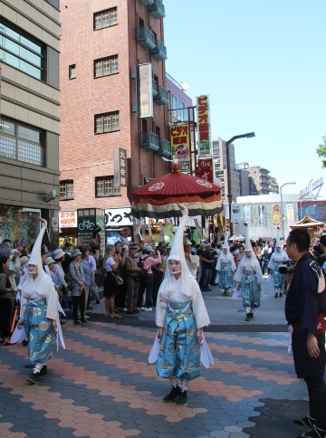 三社祭の大行列を六区ブロードウェイで拝見しました。ひさご通りでも拝見しましたがそちらはアーケード商店街で道幅がそれ程広くないので見づらかったです。浅草寺境内は人が多すぎてかなり前から場所取りをしないとまともに見ることは出来ません。こちらは歩道も広く、観客もそれほど多くないので大行列を見るのに適していました。