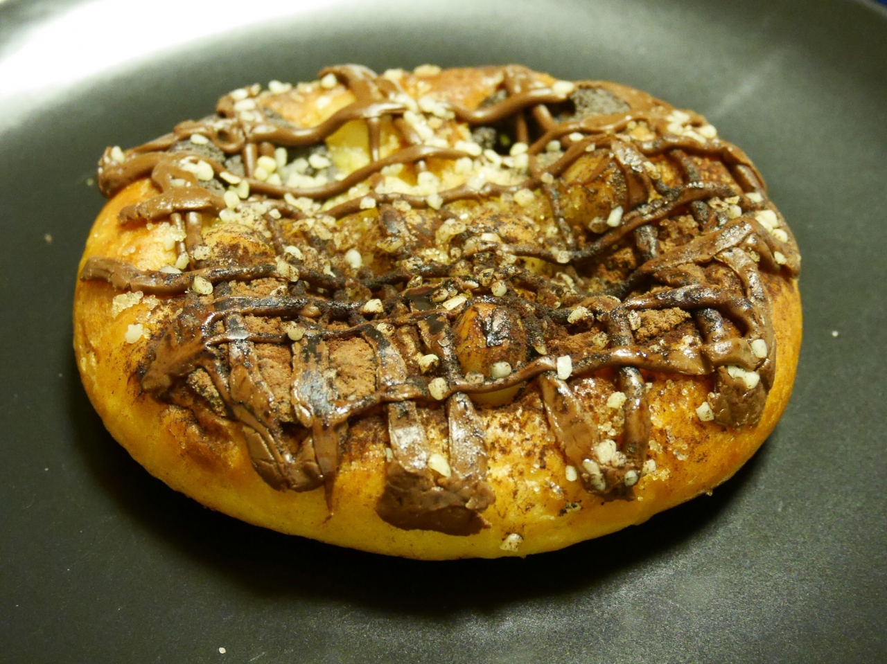 ---ヘーゼルナッツチョコレートがブリオッシュにトッピングされています。ナッツの存在感充分で、中々美味しいです。