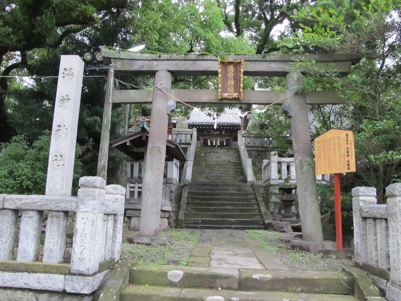 泊まったニューフジヤホテルの部屋から眼下に見える神社で、気になり、入浴後の近所の散歩で立ち寄った。大湯間歇泉の先にあり、普通の静かな神社です。境内にはほとんど観光客がいなかった。
