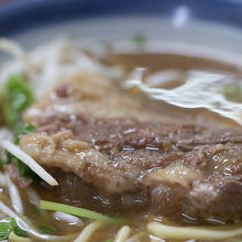 10年ぶりくらいに行きました。昔に比べて味が薄くなった気がしましたが、ソーキそばのものすごい肉は健在。路面店で駐車場はないのですが、お向かいのイオン系列のスーパーの駐車場が利用出来ます。店の前にもそのような案内が貼ってありました。