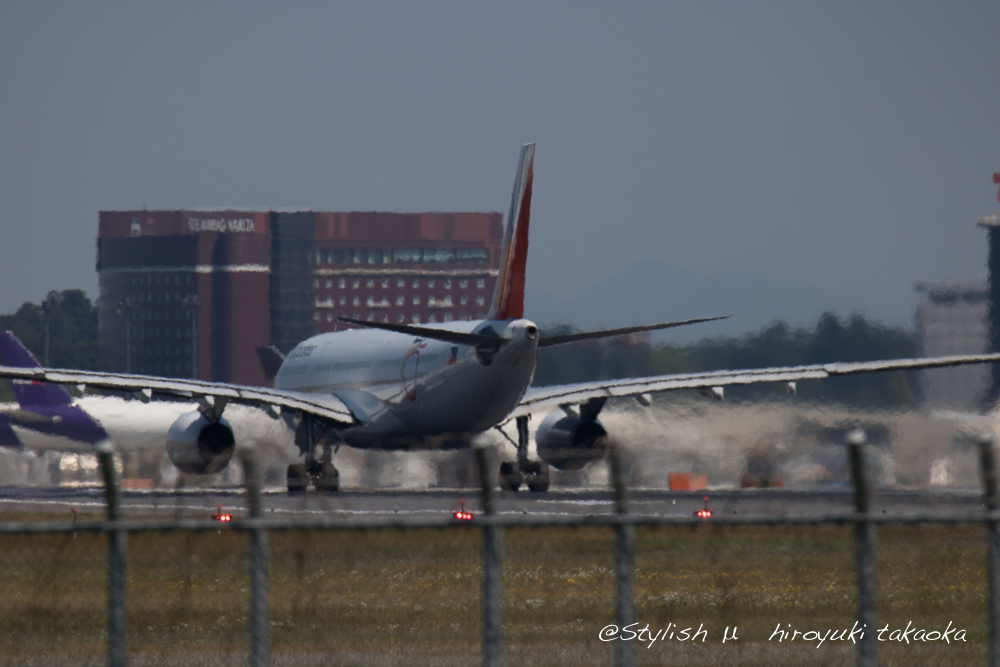 北風運用のときに間近に着陸が見られる新たな成田空港ウォッチングポイントです。あと2メートルくらい高くしてくれればフェンスを完全にクリア出来るのにというところが残念。公共交通利用の方は、航空博物館を起点に歩いて7〜8分です。