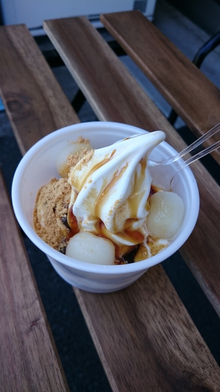 テイクアウトできる黒蜜きな粉ソフトクリームを注文。