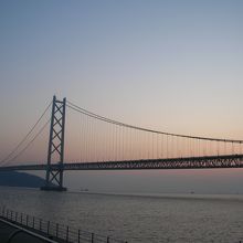 神戸と淡路島をつなぐ橋です。神戸側の橋のふもとには舞子公園という公園があって、そこから明石海峡大橋を眺めることができます。車で訪れましたが、舞子公園に駐車場があったので問題なかったです。夕方に到着しましたが、ゆっくりと日がくれていく風景は素敵でした。ライトアップまで見れてきれいでした。