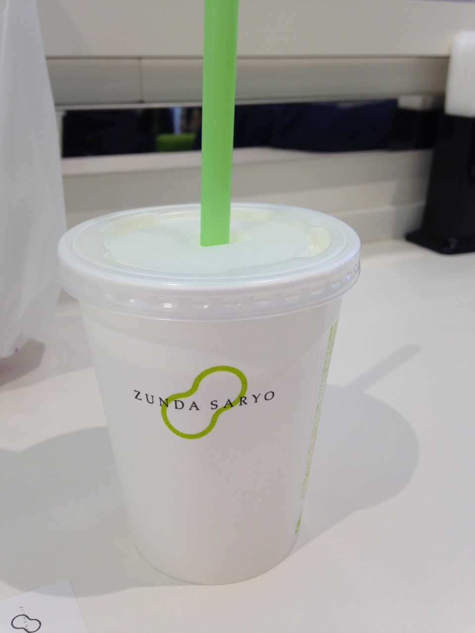 シェイクは少なくともマックのMサイズドリンク並みかと思っていたらSサイズ以下の小さなカップでした。ストローで吸っても出てこなくてスプーンをもらうほどでソフトクリームの様でした。ナッツよりも小さくくだいた枝豆が入って食感がよかったです。
