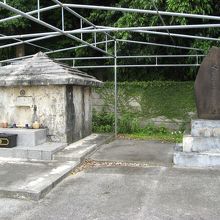 お墓は、亀甲墓が多い沖縄にあって家屋造りの珍しい墓です。沖縄に多い国吉家の始祖となっていて、沢山の方が参拝されるようで、お墓の周りにはテント用の支柱のようなものが設けられています。