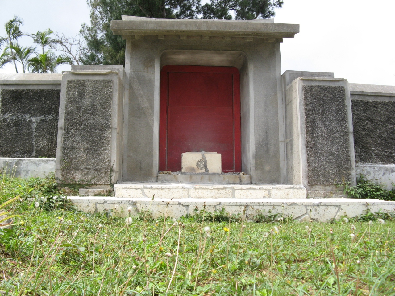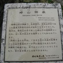 現地案内板によると、崎山御嶽は察度王の子・崎山子の屋敷跡だといわれているとのこと。拝殿にあたる門は、1865年に木造瓦葺きから石造のアーチ門に改造されたが、沖縄戦で破壊され、現在のコンクリート造りになったとか。詳細は添付写真を参照ください。