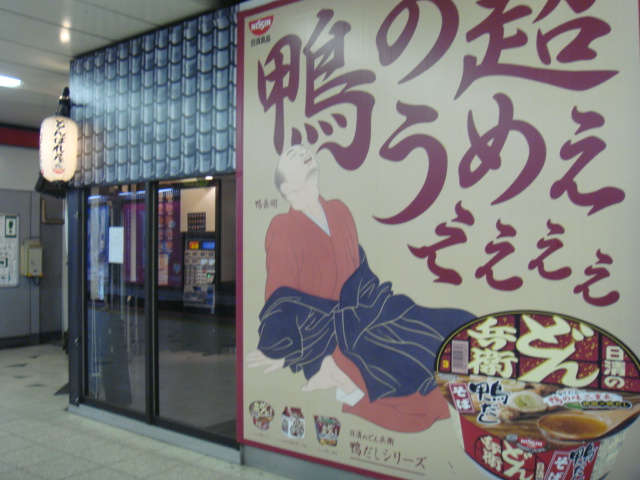渋谷駅山手線内回りホーム上にある日清食品のアンテナショップで、全国各地のご当地どん兵衛を楽しむことができます。と言ってもスーパーやコンビニに売っているどん兵衛にお湯を入れて食べるだけなので、普通のそば屋さんで食べるよりも非常に安いです。調理が一切なしの究極のファストフード店だと思います。