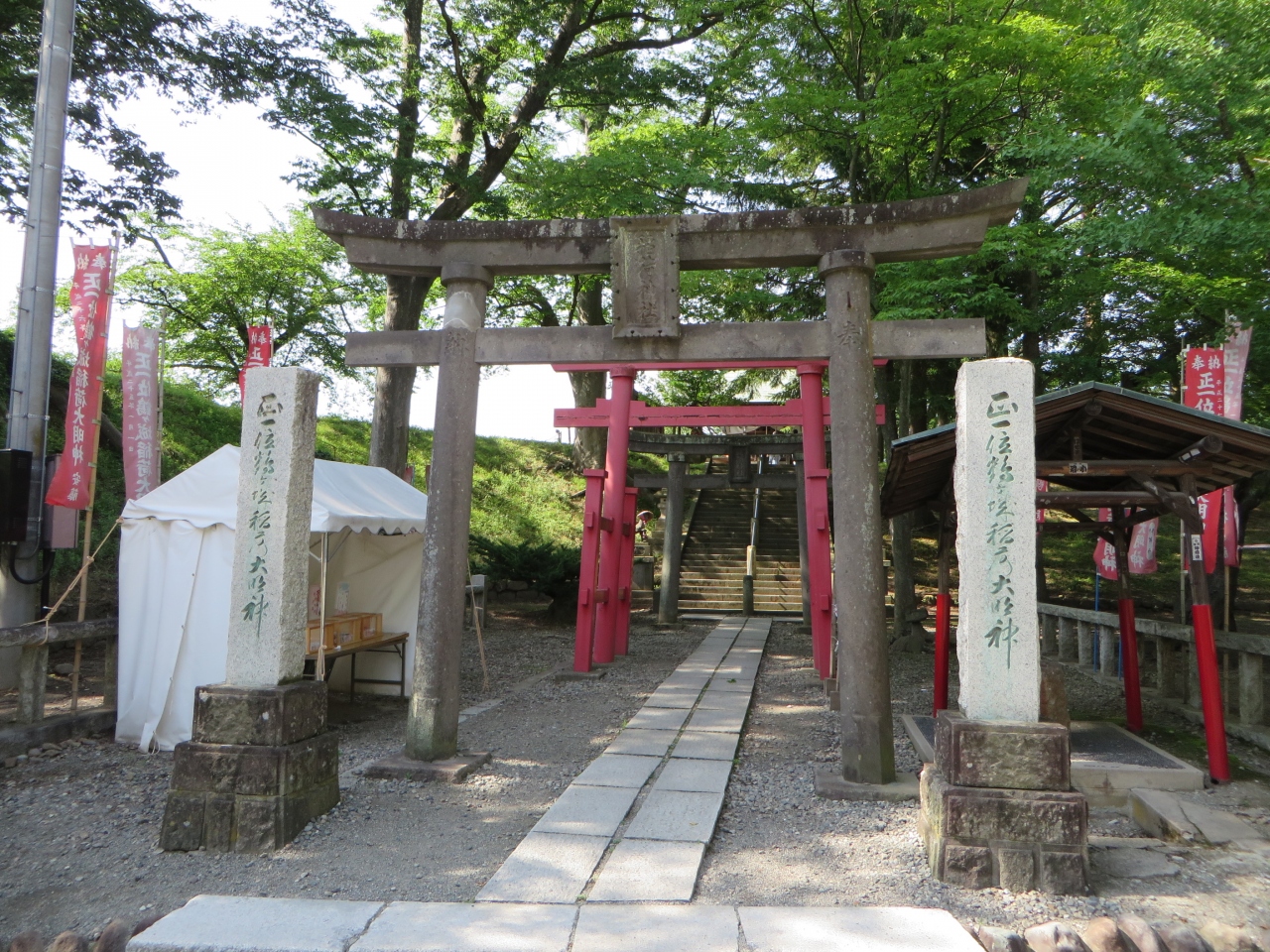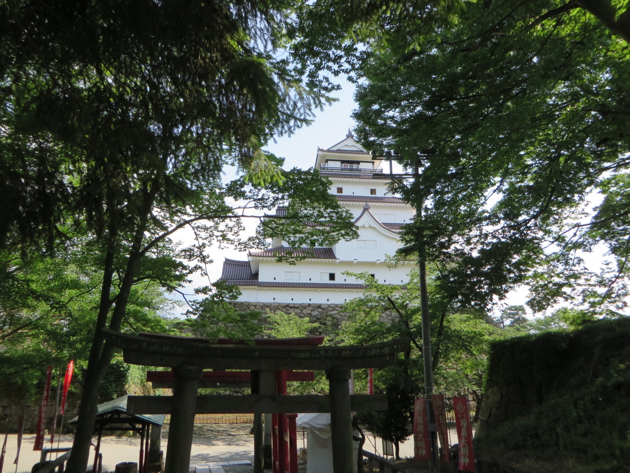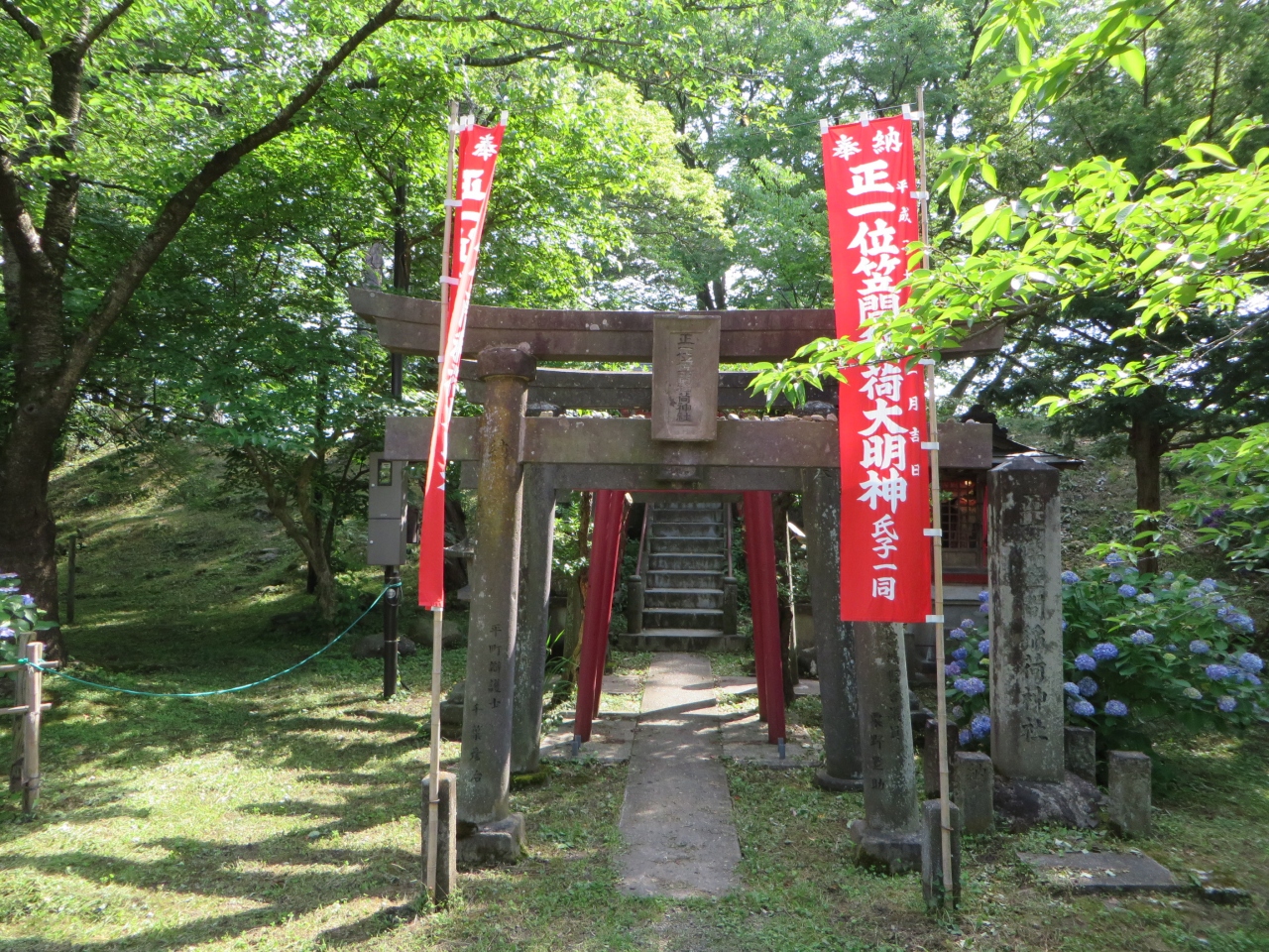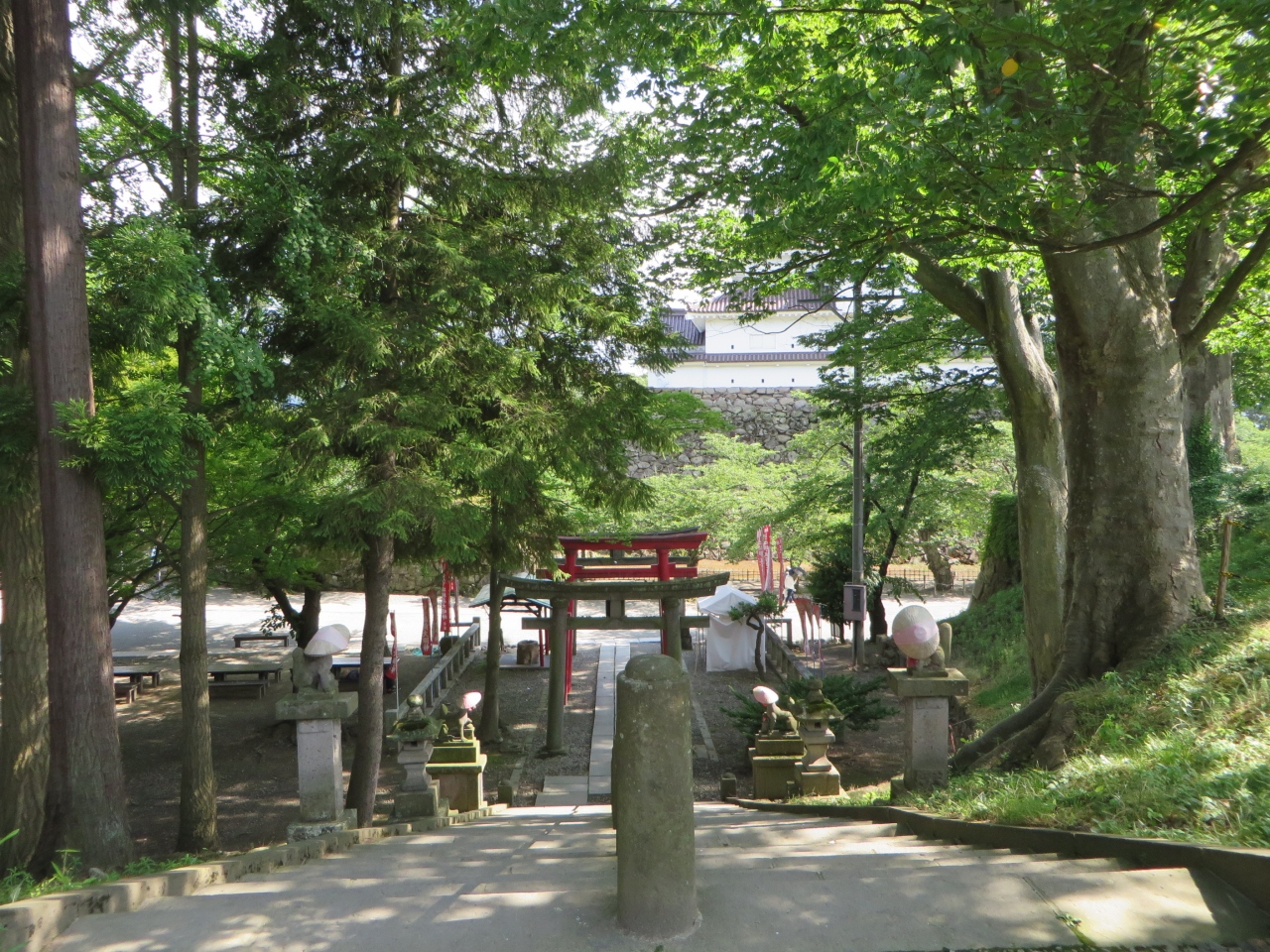 太鼓門から本丸に行く途中左側にあります。正一位鶴ヶ城稲荷大明神の石柱があり、石段を登ると本殿があります。お城へ来た人が帰りに寄ってお参りしていました。神社からお城が目の前に見えます。なお、西出丸方面にもう一つの稲荷神社・笠間稲荷大明神がありました。お城内に2つの稲荷神社があります。