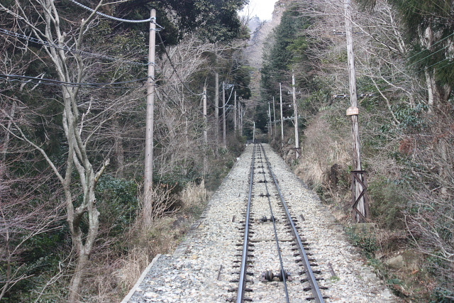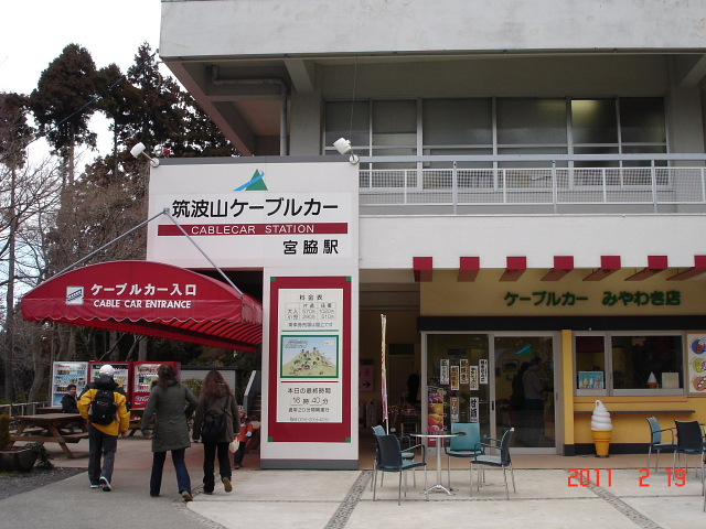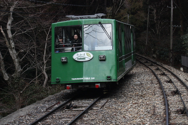 筑波山ケーブルカーは、筑波山神社隣の宮脇駅から筑波山頂駅を結びます。全長1,634m、高低差495mを毎秒3.6m、所要時間8分で一気に山頂駅の御幸ヶ原まで運行するわが国有数のケーブルカーです。(全長1,634mは、日本で3番目に長い距離だそうです。)