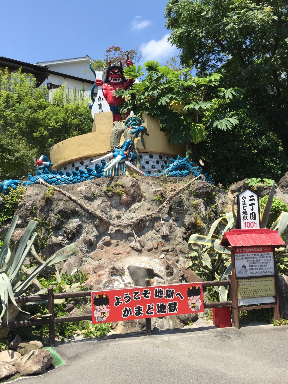 かまど地獄は入るとすぐに売店があり、売店を抜けると園内を1周するようにたくさんの池がありました。ひとつひとつ池の色が違います。飲泉も出き外国人の方が行列していました。また軽食をとる場所もあるので便利でした。