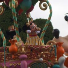 いつも、後ろのほうで鑑賞していますがディズニーキャラ勢ぞろいでとても楽しめるパレードです。ハロウィンやクリスマスの時でも1日1回は必ずやりますので足を止めて鑑賞してほしいです。遠くからでもちゃんと見えて楽しめるのが良いです。