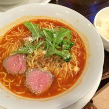 ローストビーフやブロッコリー、トマトが乗っていてヘルシーラーメンです。