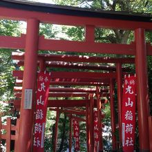 鶴岡八幡宮境内の西側、小高い丘の上にあります。赤い旗と鳥居がずらりと並ぶ お稲荷さんの雰囲気は やはりいいものです。