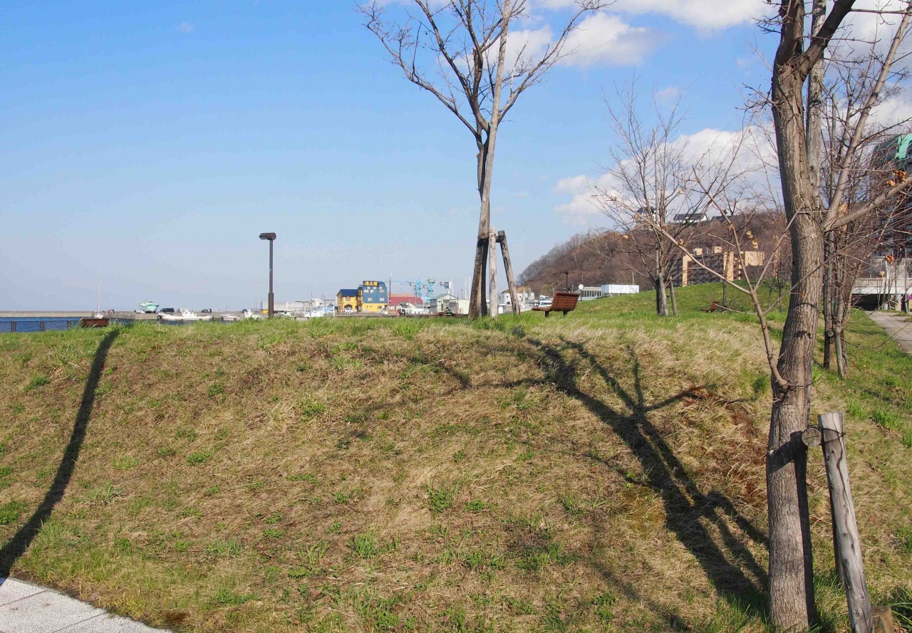ウイングベイ小樽の向かいに広がる海沿いの公園が築港臨海公園です。JR小樽築港駅から連絡通路行けますね。ゆったりとした起伏に綺麗に芝生が植えられていて散歩や休憩にうってつけですね。小樽港マリーナが望めるロケーションも素敵です。