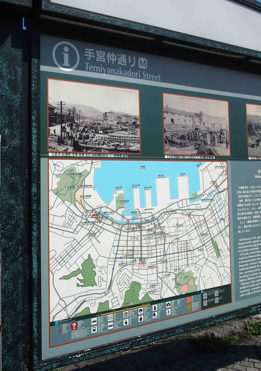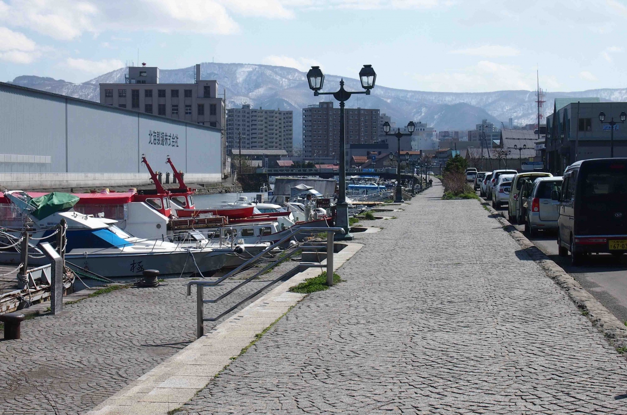 豊川町と石山町の谷間にある手宮仲通。手宮市場の前を通る細い道路です。この辺りは地元の商店や町内の会館などが点在する静かな街並みです。もともと小樽の中心部ににぎわいが移る前まではこの辺りが小樽一番の繁華街でした。