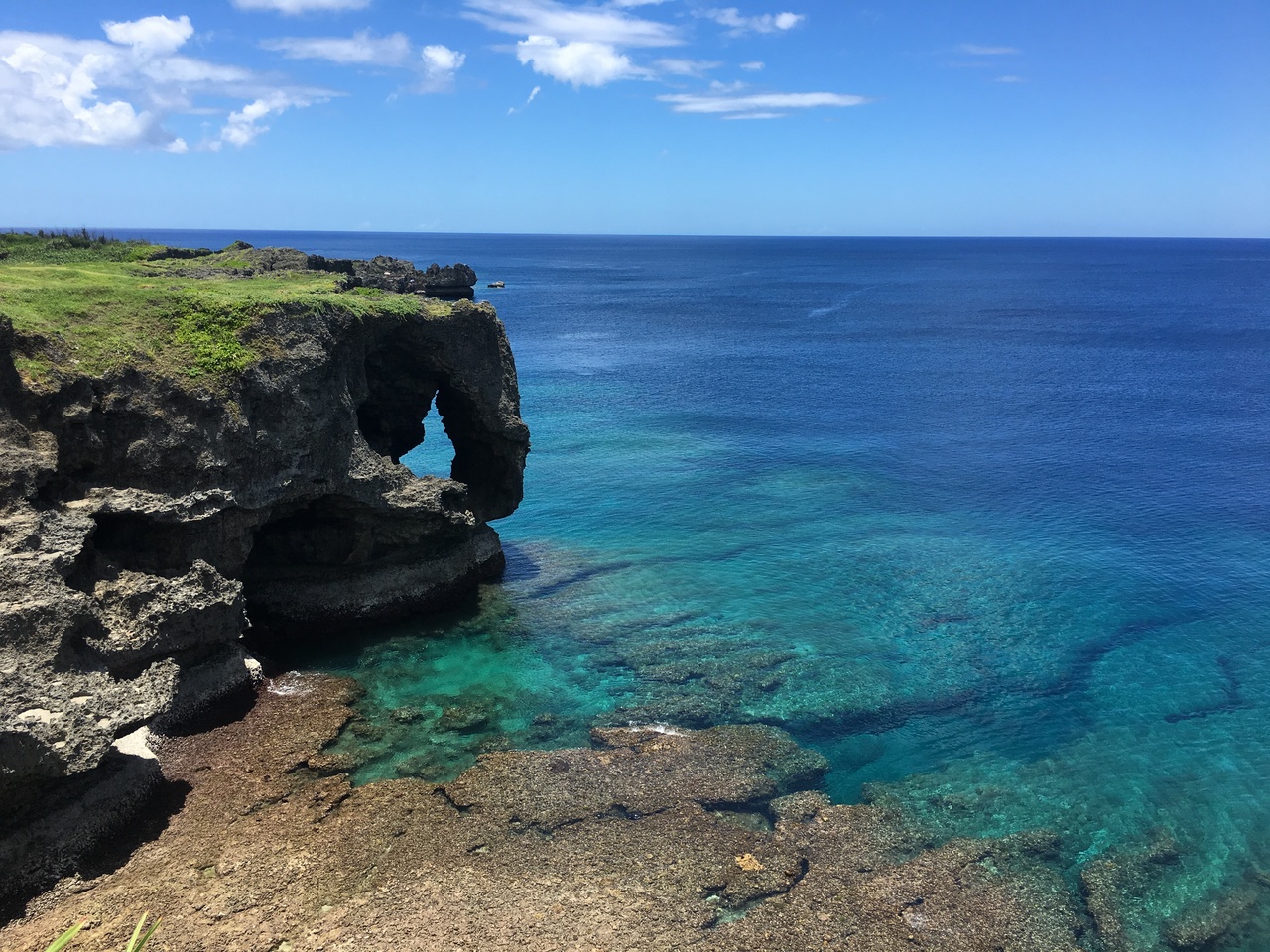 沖縄で有名な絶景スポット代表といっても過言ではない場所です。平日の昼間にいきましたが観光客が多く混雑していました。海と万座毛とのコントラストが絶景でフォトスポット間違いなしです。駐車場から歩いてすぐの場所にあり、立地条件もばっちりです。