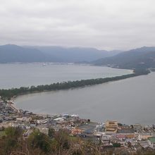 天橋立のすぐ近くの山にある公園です。下からはケーブルカーで公園まで登ることができます。反対側の山にある天橋立ビューランドからは天橋立がぎざぎざした龍のようにみえますが、この公園からは真一文字に見えます。
