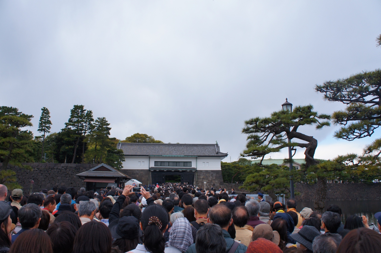 春の皇居乾通り一般公開の際に訪れました。春と秋に一般公開されている乾通りは坂下門が入り口になります。門の前で手荷物検査を受けます。入場開始時間頃に到着しましたが、ものすごい大行列になっており、実際に乾通りに入るのに3時間くらいかかりました。