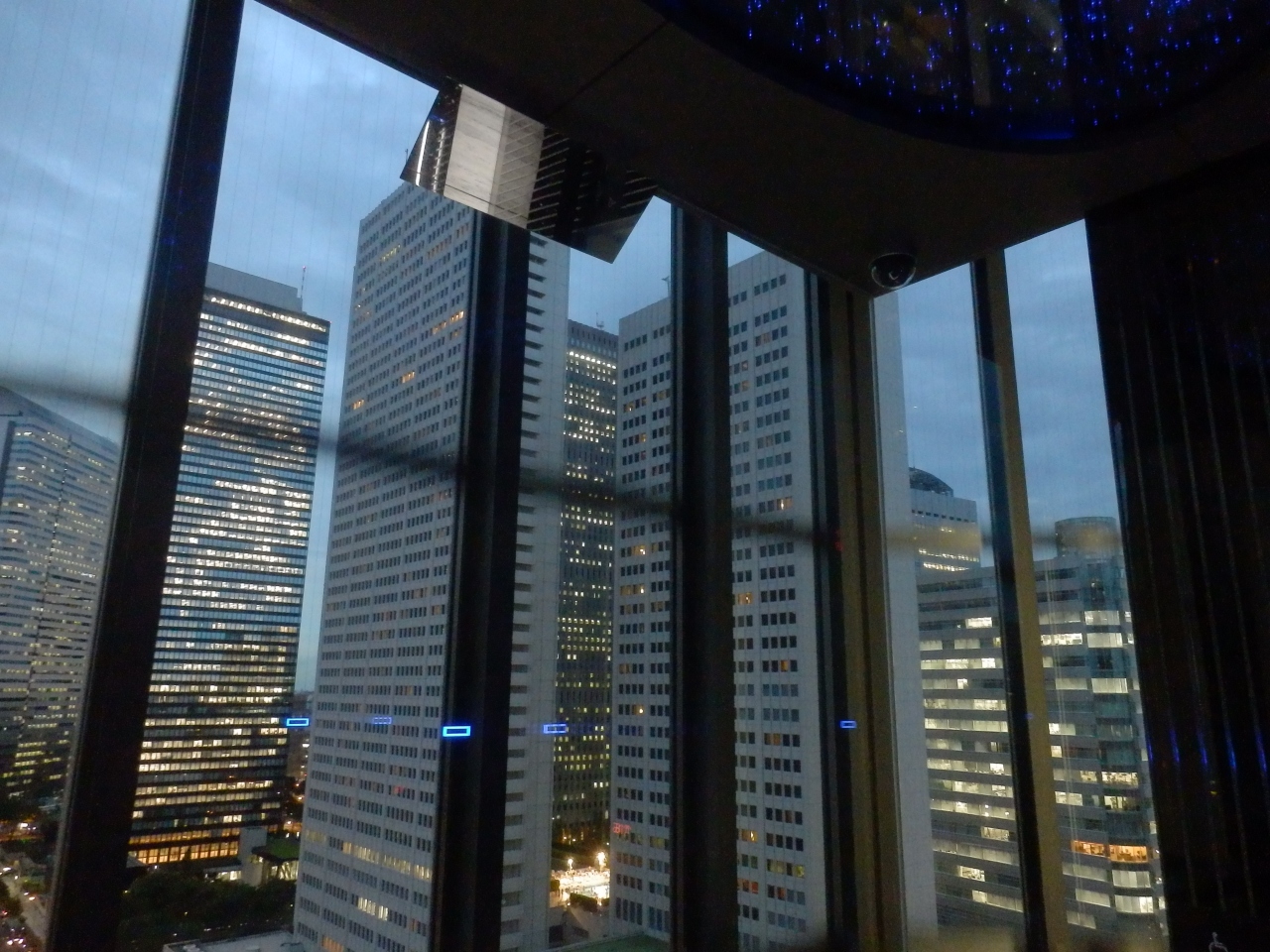 西新宿の高層ビル群の中ではあまり目立ちませんが、こちらのビルも中央が吹き抜けになっていて、高層フロアにはレストラン街があります。このビルの良い点はエレベ ーターがシースルーのため、エレベーターからも夜景が見られてよかったです。また、レストラン街には吹き抜けにスカイブリッジが架かっていて、そこから下を見下ろすのも楽しかったです。