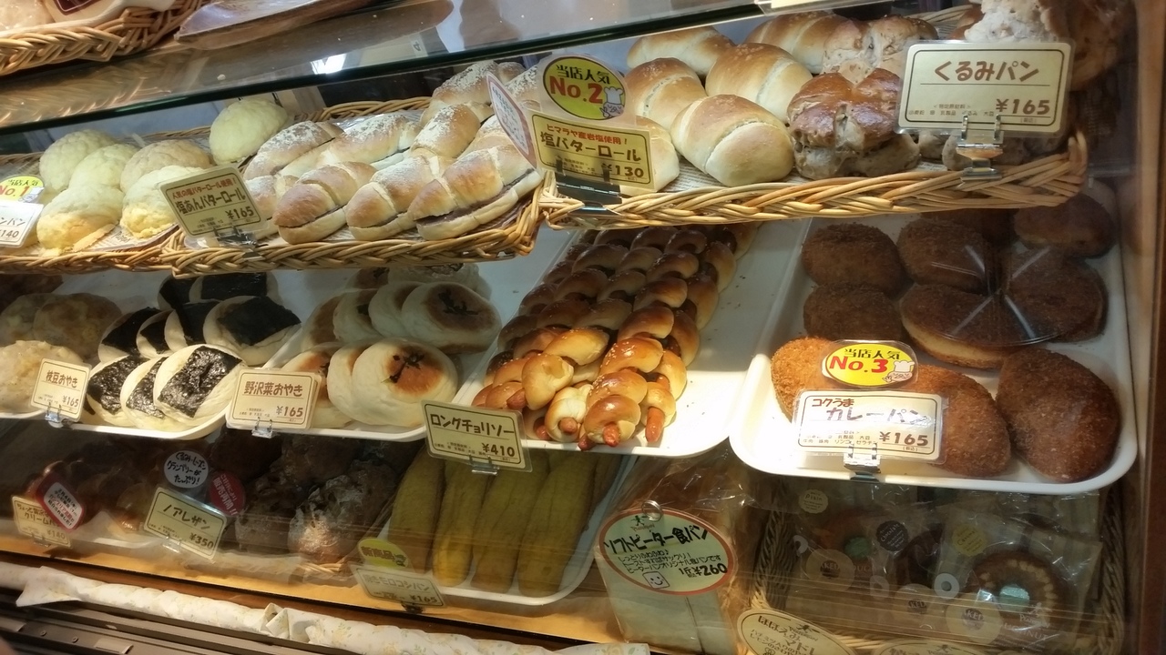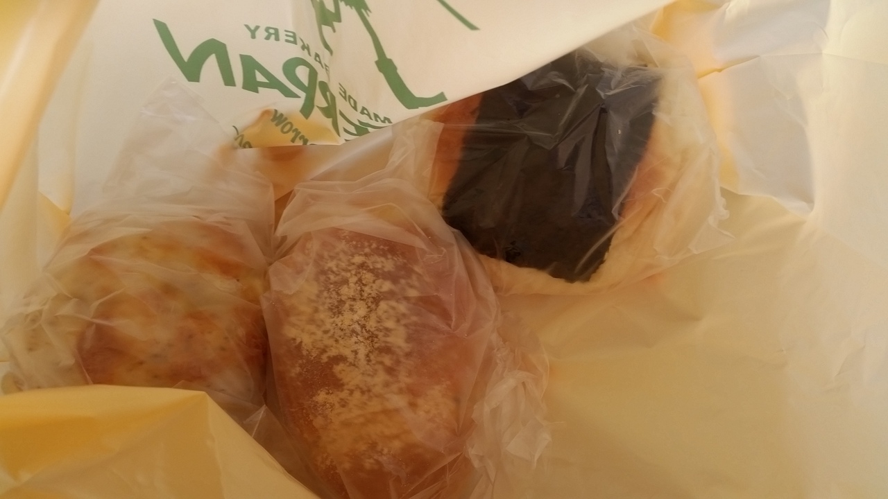 メロンパンが有名ですが今回はコーンパン、枝豆の入ったおやきとチーズのパン。