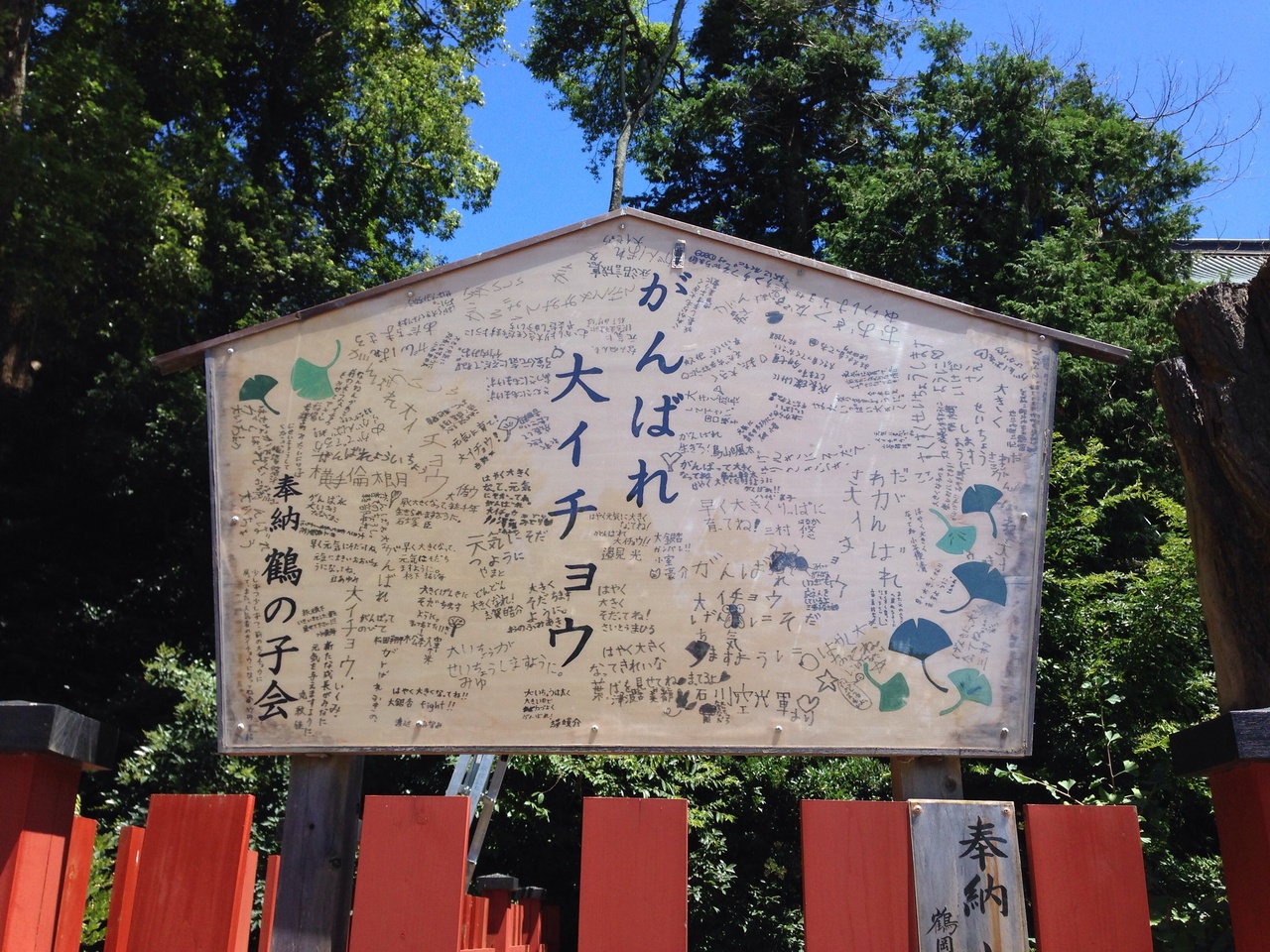 隣には小さな銀杏が育っていました、大きくなる様に応援メッセージも書かれていました。次に訪れる時までに どの位大きくなっているかも楽しみです。