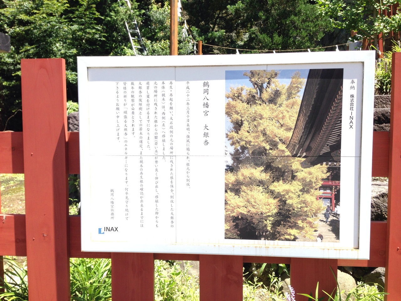 鶴岡八幡宮大階段の脇にそれはそれは大きな木の幹が 守られるようにあります。残念ながら幹の部分だけで上部はありません、2010年3月10日に強風で倒れてしまった。